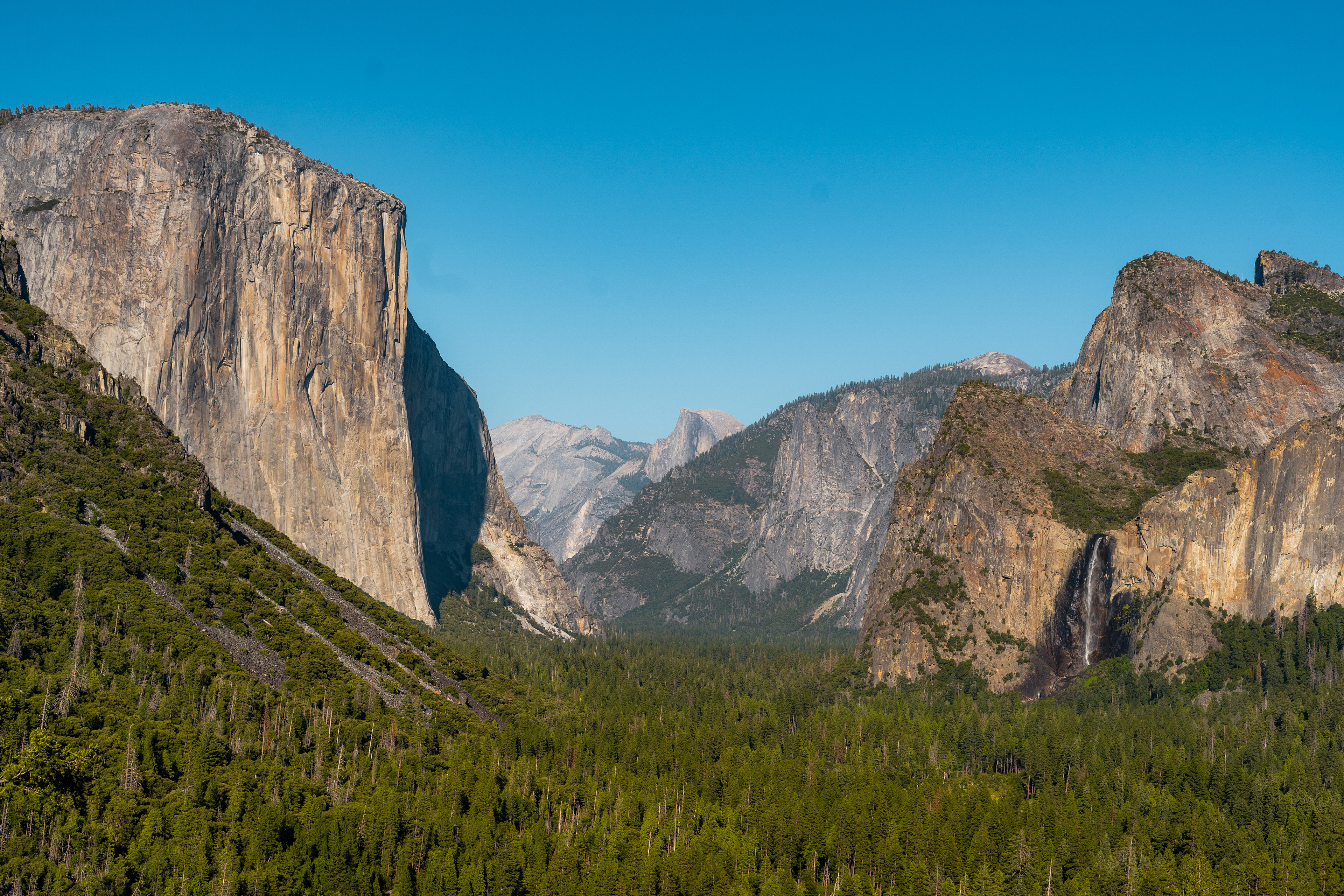 The crowds vanished the moment we left the falls. The trail softened underfoot, pine needles trading places with stone. Sunlight filtered through fir and cedar. Every few minutes the trees would part and there it was: El Capitan, the monolith, rising like the prow of the world. Continuing felt like abandoning common sense in favor of curiosity, a trade we’ve willingly made before.