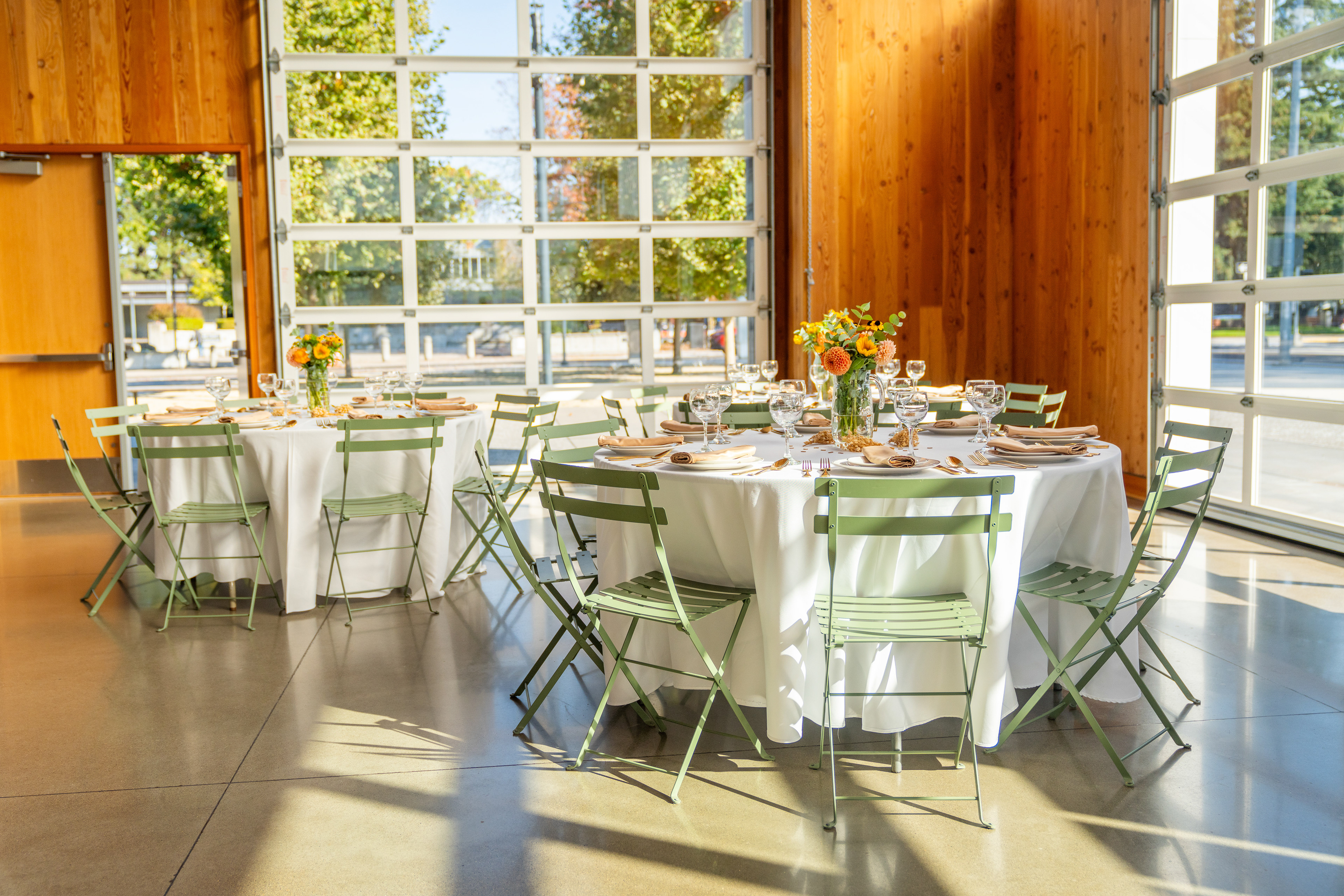 Highlight amenities that simplify planning (kitchen, restrooms, tables/chairs, layout options)